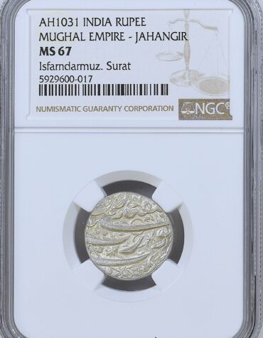 India AH1031 Rupee Mughal Empire – Jahangir NGC MS67 – TOP POP
