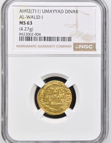 Umayyad Al-Walid Dinar AH92 NGC MS63