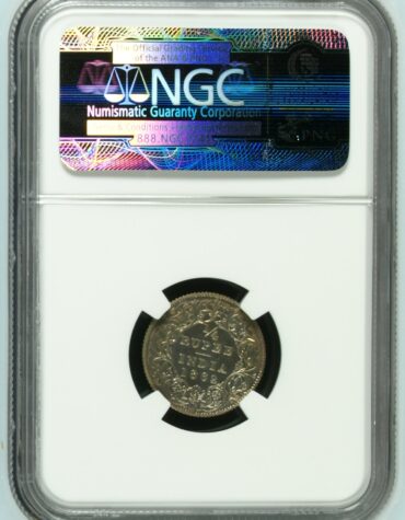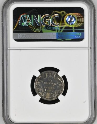 India 1878 B Rupee New Unlisted Variety with “V” in “N” of “One” in reverse, NGC MS62