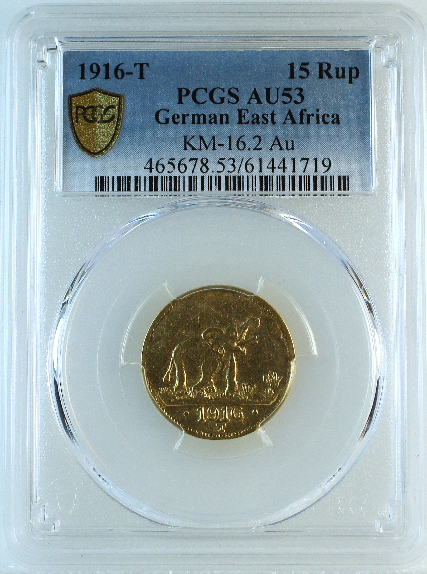 German East Africa 1916-T 15 Rupien, rare variety with Arabesque ending below A, mintage of only 6395