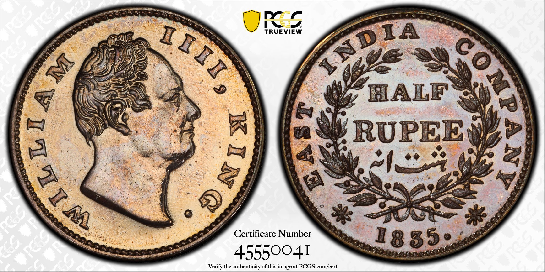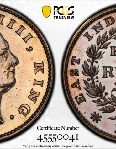 India 1835 C 1/2 Rupee Restrike PCGS MS64 – Beautiful Toning