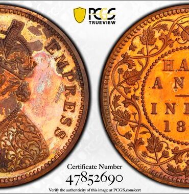 India 1890(C) 1/2 An British Prid-590 Restrike PCGS PR63RB