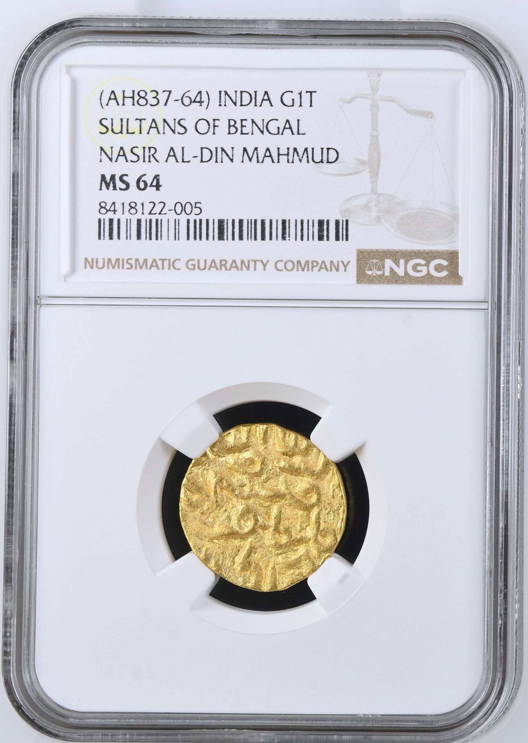 India (AH837-64) Gold Tanka Sultans of Bengal Nasir Al-Din Mahmud NGC MS64 RRR