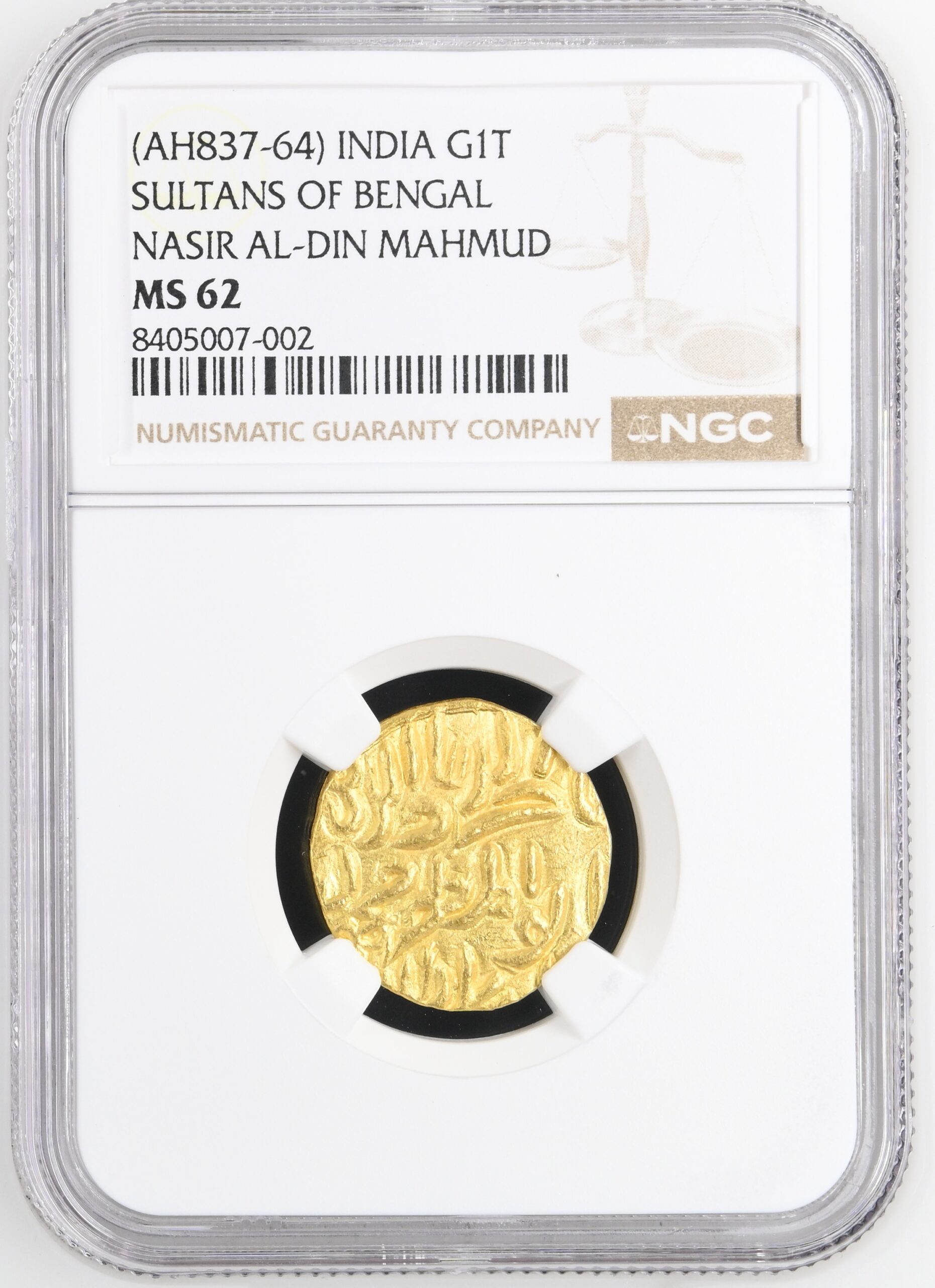 India (AH837-64) Sultans of Bengal Nasir Al-Din Mahmud Gold Tanka NGC MS62