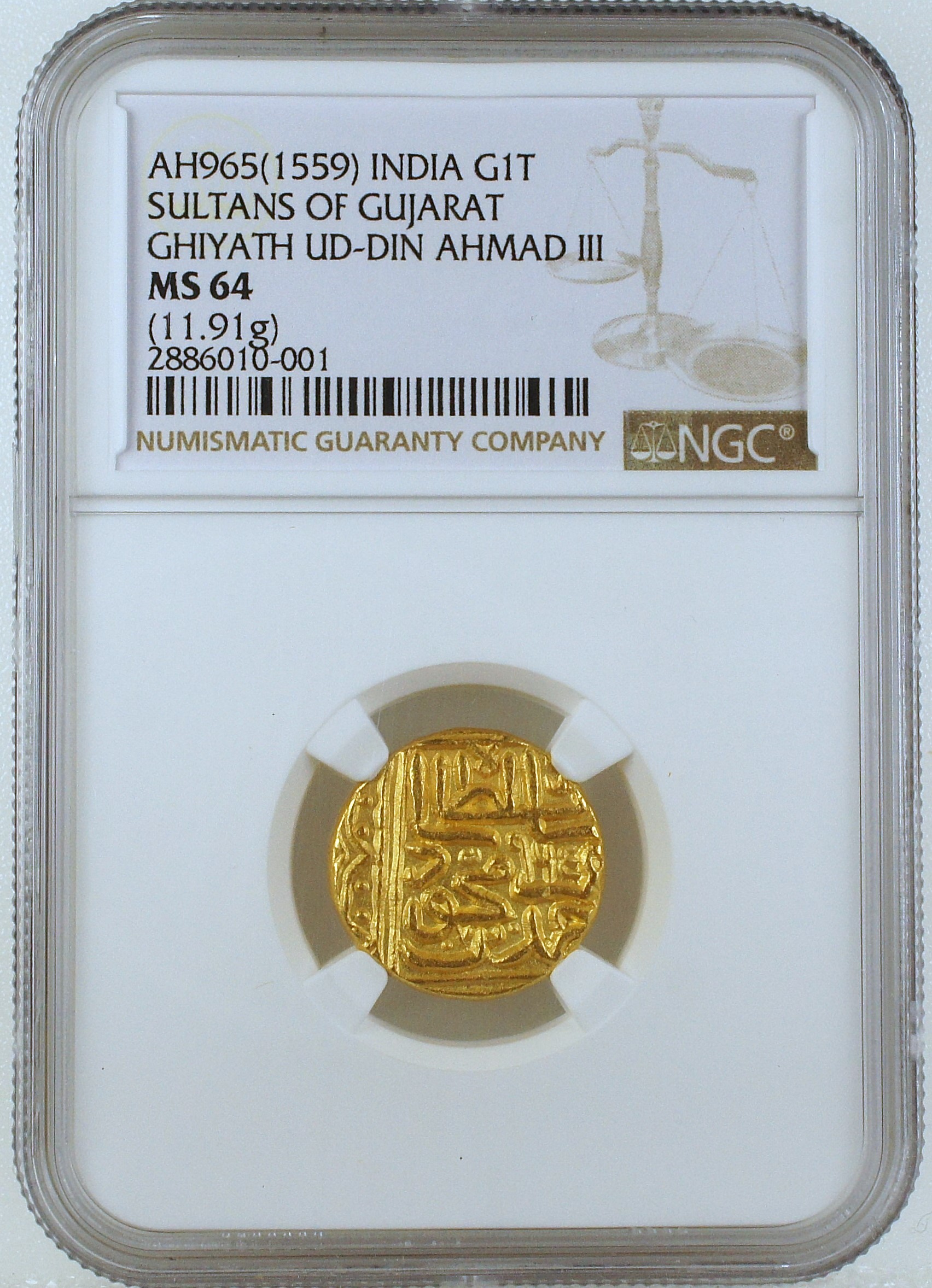 India AH965(1559) Gold Tanka Sultans of Gujarat Ghiyath Ud-Din Ahmad III NGC MS64