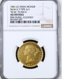 A very beautiful and undergraded British mohur, graded AU58 but looks at least MS61.