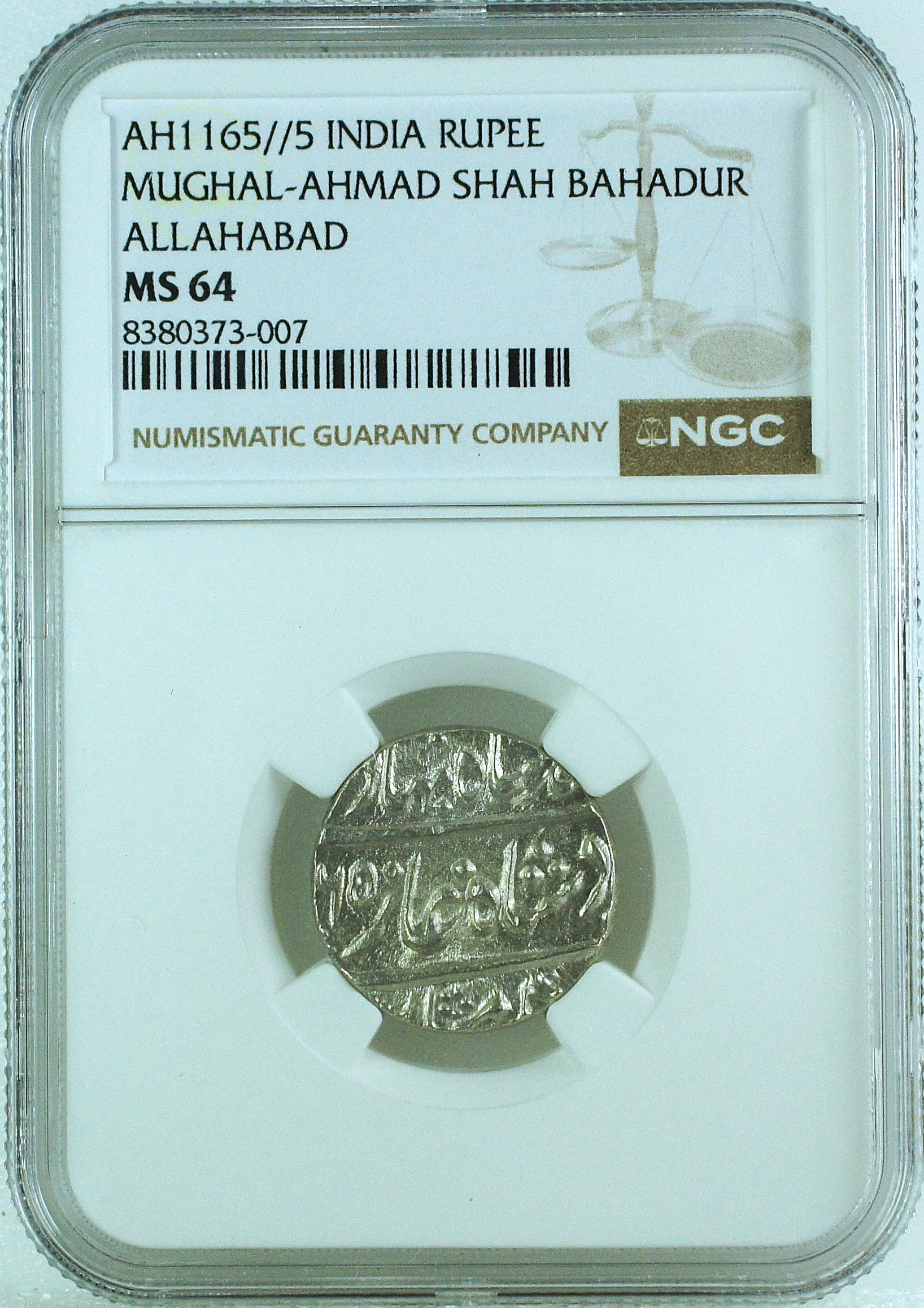 India Mughal Empire AH1165//5 Ahmad Shah Bahadur Rupee NGC MS64 – RR