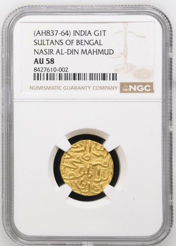 India Sultans of Bengal AH837-64 Nasir al din Mahmud Gold Tanka NGC AU58