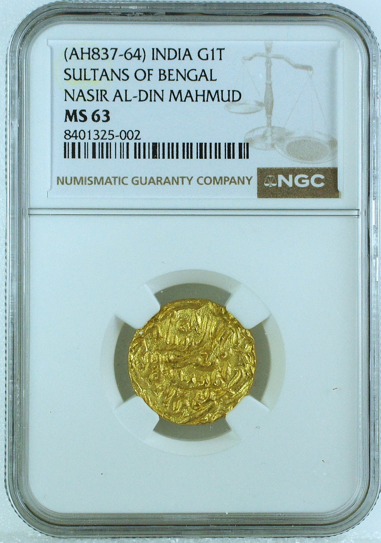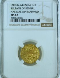 India Sultans of Bengal AH837-64 Nasir al din Mahmud Gold Tanka NGC MS63 – RRR